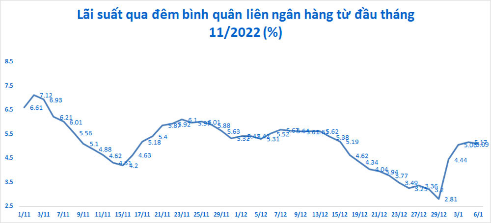 Trong 2 tuần cuối năm 2022 NHNN hút mạnh tiền trong bối cảnh hệ thống ngân hàng có dấu hiệu dư thừa thanh khoản. Lãi suất cho vay qua đêm tụt giảm mạnh, từ mức 5-6% trước đó về quanh mức 2,8-4%/năm.