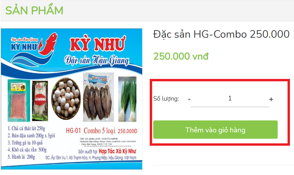 Bước 1: Xem các túi Combo nông sản tại: https://htx.cooplink.com.vn/product