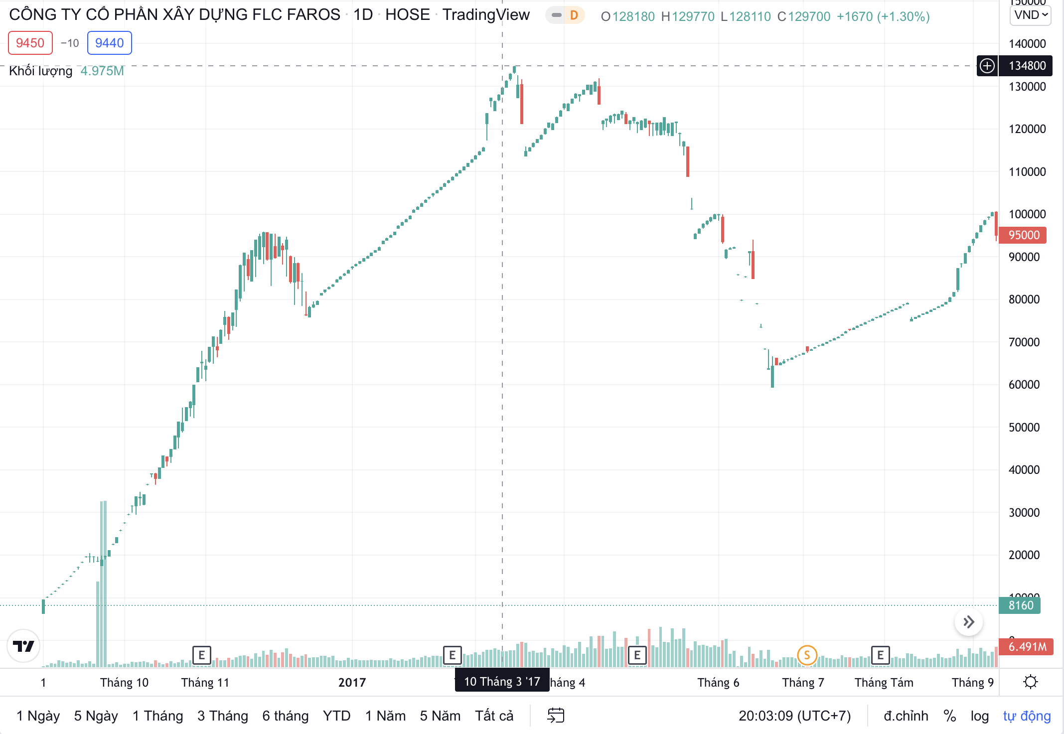 Khi đó, thị giá cổ phiếu đạt đỉnh giúp FLC Faros xếp thứ 6 trong nhóm doanh nghiệp có vốn hóa lớn nhất sàn HOSE với 75.465 tỉ đồng. Doanh nghiệp này còn vượt vốn hoá Vietinbank (66.649 tỉ đồng); BIDV (56.067 tỉ đồng) hay Tập đoàn Masan (49.572 tỉ đồng).