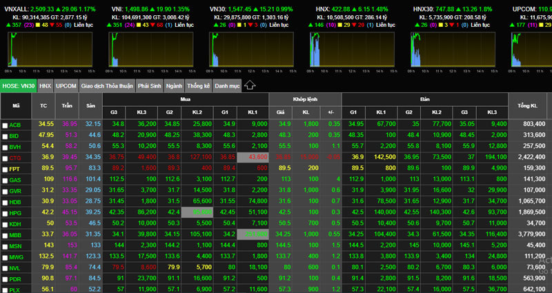 Mở cửa phiên giao dịch, đa số các cổ phiếu thuộc nhóm VN-30 tăng giá, trong đó nhóm ngân hàng và bất động sản diễn biến khá ấn tượng với nhiều mã tăng nhanh lên vùng đỉnh cao lịch sử. Trước đó, trong phiên giao dịch cuối cùng trước kỳ nghỉ lễ, dòng tiền cũng đổ vào nhóm VN-30 một cách mạnh mẽ, đặc biệt từ nhóm ngân hàng.