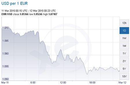 12/03/2015 16:25Tỷ giá: 1 USD đổi 1 Euro?