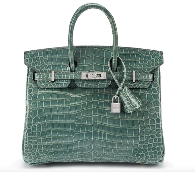 Mức giá cao nhất thuộc về chiếc Birkin da cá sấu "Bleu Jean" với phần cứng bằng vàng trắng và đính kim cương 18k, được sản xuất vào năm 2006. Chiếc túi đã được bán với giá 1,52 triệu HKD, tương đương 194.000 USD (4,57 tỷ đồng), theo website của Sotheby's.