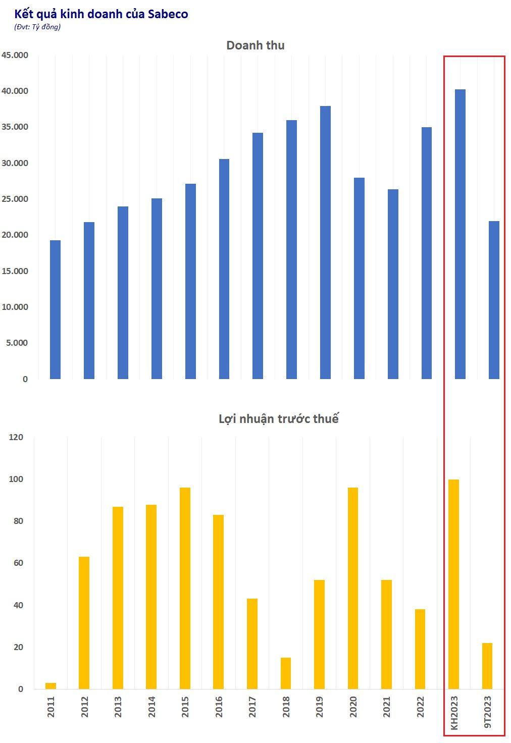 Sau 9 tháng, Sabeco ghi nhận doanh thu 21.940 tỷ đồng, lợi nhuận ròng 3.170 tỷ đồng, lần lượt giảm 12% và 24% so với thực hiện cùng kỳ năm trước. Như vậy, sau 3 quý công ty chỉ mới hoàn thành khoảng 57% kế hoạch lợi nhuận năm. Sự phục hồi đã không diễn ra như ban lãnh đạo Sabeco kỳ vọng, trong khi Nghị định 100 vẫn tiếp tục làm giảm mức tiêu thụ của toàn ngành.