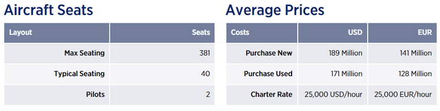 Trường hợp chủ tịch tập đoàn Vingroup lựa chọn dòng Boeing 787-8 Dreamliner thì chi phí thuê một giờ sẽ rẻ hơn. Theo trang Privatefly, giá thuê một giờ với loại máy bay khoảng 15.000 USD. Như vậy với việc thuê 2 chiều tối thiểu 24 giờ, chi phí cần bỏ ra là khoảng 360.000 USD tương đương 8,4 tỷ đồng.