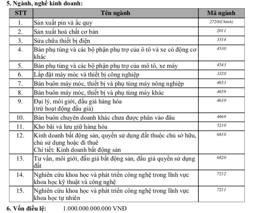 Ngành nghề kinh doanh chính của VinES là sản xuất pin và ắc quy, là điều dễ hiểu khi VinFast đang đẩy mạnh các hoạt động nghiên cứu và sản xuất ô tô. Chủ tịch HĐQT VinES là bà Mai Hương Nội, hiện cũng là Phó Tổng Giám đốc Vingroup.