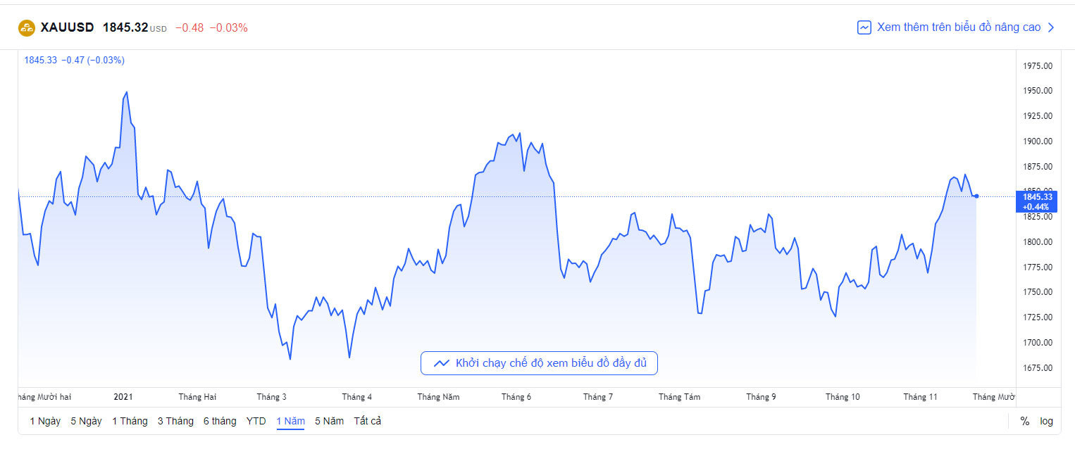 Trên thị trường quốc tế, giá vàng cũng tiếp tục giảm mạnh. Tính tới 8h55' hôm nay (22/11, giờ Việt Nam), giá vàng thế giới giao ngay đứng quanh ngưỡng 1.846 USD/ounce, giảm 1 USD/ounce so với kết thúc phiên cuối tuần. Còn giá vàng giao tháng 1/2022 trên sàn Comex New York ở mức 1.848,4 USD/ounce, giảm 1,6 USD/ounce so với kết thúc phiên cuối tuần.