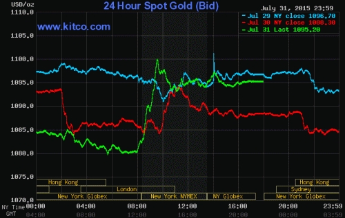 Trên sàn New York, theo ghi nhận của Kitco, giá vàng giao dịch ở mức 1094.90 USD/Ounce, bán ra 1095.4 USD/Ounce. Sàn Tokyo, Hongkong cũng ghi nhận giá vàng tương tự.