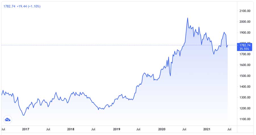 Giá vàng giao ngay tại thị trường châu Á lúc hơn 10h theo giờ Việt Nam đứng ở 1.783,7 USD/oz, tăng 3,9 USD/oz so với đóng cửa phiên đêm qua tại New York. Mức giá này tương đương 49,7 triệu đồng/lượng nếu được quy đổi theo giá USD bán ra tại Ngân hàng Vietcombank và chưa tính các chi phí liên quan.