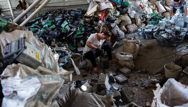 Khi các thiết bị điện tử vừa mới được sản xuất và trong quá trình sử dụng, các chất trong thiết bị không gây hại cho con người. Việc tích trữ rác điện tử ở các cơ sở thu mua phế liệu không đảm bảo điều kiện bảo quản, dưới tác động của mưa, nắng, bị va đập… ở nơi chứa rác thải, các chất có hại bị phơi ra ngoài không khí, bị bỏ ra môi trường sống gây độc hại đối với môi trường và sức khỏe con người.