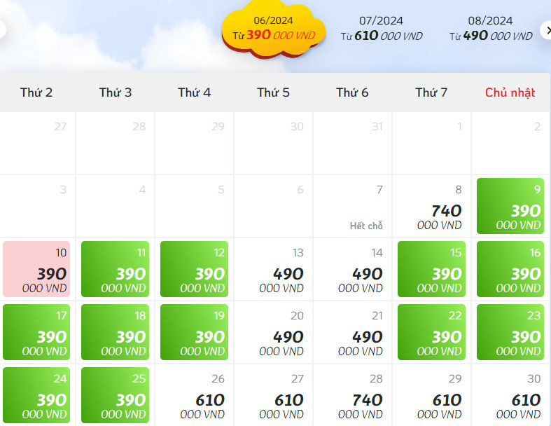 Đáng lưu ý, nếu đặt vé cho ngày bay xa hơn, các hãng hàng không tung ra nhiều mức giá thấp để hành khách có nhiều lựa chọn. Nhờ đó, trong tháng 7, giá vé nói chung trên các chặng bay chỉ bằng 20-70% mức giá tối đa. Nếu hành khách bay trước 6h và sau 21h, giá vé khá rẻ chỉ dưới 2 triệu đồng cho các chặng từ Hà Nội và TP.HCM đi Đà Nẵng, Nha Trang,...