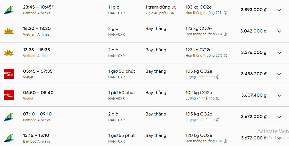 Nếu bay từ TPHCM, giá vé đi Đà Nẵng cũng tương đương, từ 3,9 triệu đồng/vé khứ hồi. Tuy nhiên, chặng TPHCM - Nha Trang giá vé mềm hơn so với bay từ Hà Nội, khoảng 3,7 triệu đồng/vé.