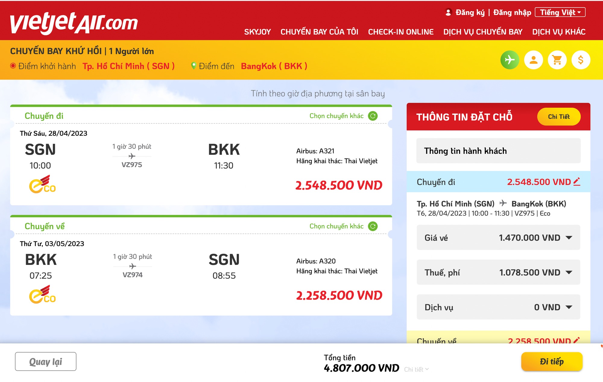 Nếu so sánh mức giá trên, thì vé máy bay khứ hồi đi Bangkok của hãng Vietjet đi ngày 28/4 - về ngày 3/5 cũng chỉ ở mức hơn 4 triệu đồng/vé. Mức vé này gần tương đương với vé đi các điểm du lịch trong nước. Đây là lý do khiến nhiều người quyết định xuất ngoại thay vì du lịch trong nước, thông tin trên Dân Việt.