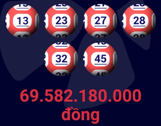 | Giải Jackpot kỳ thứ 61 của Vietlott có giá trị gần 70 tỷ đồng. Ảnh chụp màn hình. |