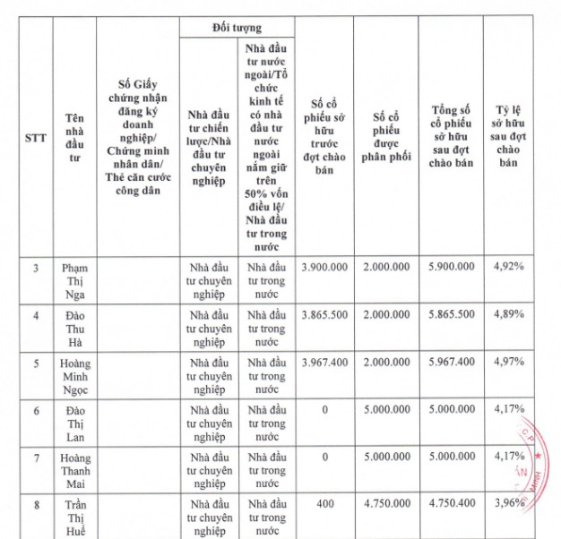 Ngoài ông Thắng, có 6 cá nhân khác đã mua thành công 20,75 triệu cổ phiếu VFS trong đợt chào bán riêng lẻ này, bao gồm: