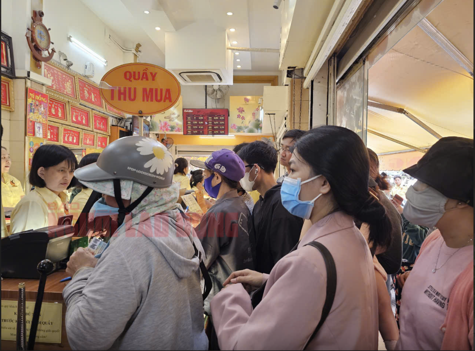Giá vàng leo thang từng giờ, người mua truyền tai "chiêu lạ" xếp hàng thế chân trước ngày vía Thần Tài -