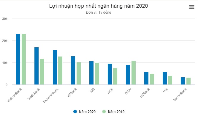 Nhìn chung, bức tranh lợi nhuận ngân hàng năm 2020 có những gam màu sáng tối trái chiều, nhưng vẫn ghi nhận phổ biến mức tăng trưởng hai chữ số. Bảng xếp hạng lợi nhuận cũng có sự xáo trộn với sự bứt lên của "ông lớn" VietinBank và một số nhà băng tư nhân.
