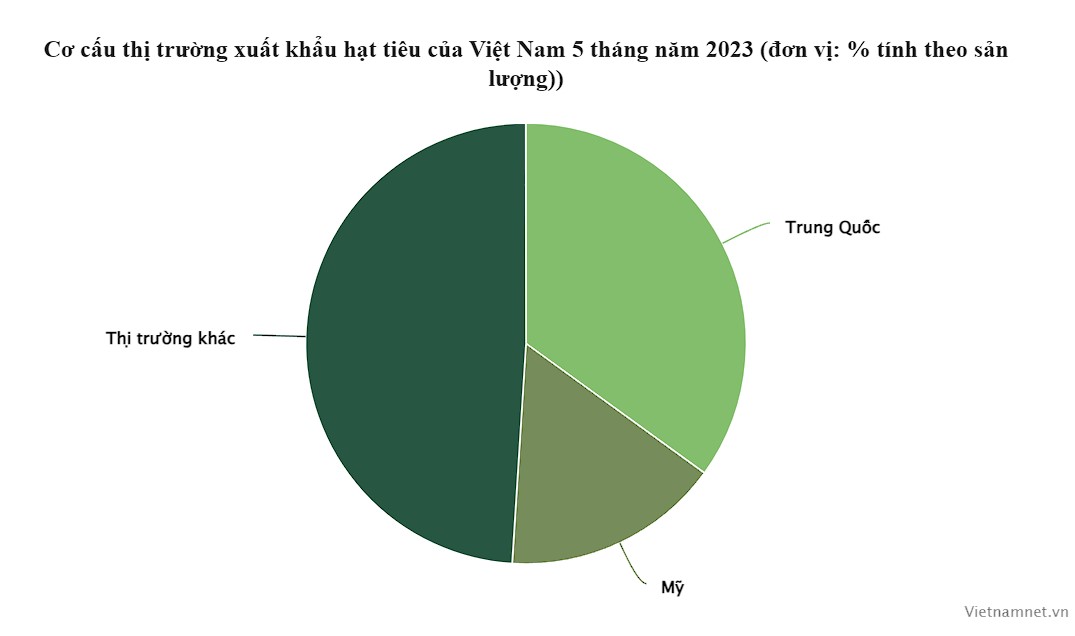 Trung Quốc và Mỹ là thị trường xuất khẩu lớn nhất của mặt hàng được ví như "vàng đen" này của nước ta, chiếm lần lượt 35% và 16% tổng sản lượng tiêu xuất khẩu trong 5 tháng đầu năm.