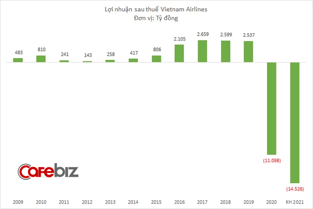 Vietnam Airlines dự kiến lỗ trước thuế 14.304 tỷ đồng và lỗ sau thuế 14.526 tỷ đồng, tăng khoảng 30% so với số lỗ năm 2020.