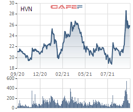 Cổ phiếu Vietnam Airlines tăng mạnh trong nửa đầu tháng 9, lên tới hơn 40%, hiện tại đang dao động quanh ngưỡng 25.000 – 26.000 đồng.