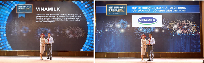 Đây là lần đầu tiên Anphabe thực hiện khảo sát và công bố Thương hiệu nhà tuyển dụng hấp dẫn nhất đối với sinh viên Việt Nam trên quy mô lớn với 23.212 đáp viên thuộc 10 khối ngành từ 93 trường đại học lớn toàn quốc. Vinamilk đã dẫn đầu Top 100 nơi làm việc tốt nhất Việt Nam trong hai năm liền 2017 và 2018. Việc tiếp tục duy trì ngôi vị số 1 trong 100 nơi làm việc tốt nhất Việt Nam nhiều năm liền và tiếp tục là Thương hiệu nhà tuyển dụng hấp dẫn nhất đối với sinh viên Việt Nam năm 2020 cho thấy Vinamilk tiếp tục đáp ứng tốt các kỳ vọng về triển vọng nghề nghiệp, môi trường làm việc, thu hút nhân tài và sự bền vững trong chiến lược nhân sự nói chung.