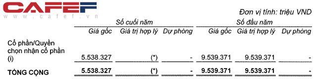 Báo cáo kiểm toán công ty mẹ của Tập đoàn Vingroup ghi nhận khoản đầu tư vào chứng khoán kinh doanh đã giảm từ 9.539 tỷ đồng đầu năm xuống còn 5.538 tỷ đồng cuối năm (tính theo giá gốc).