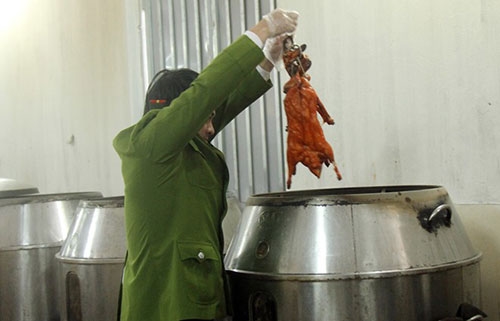 Làm việc với cơ quan chức năng, lái xe chở vịt không xuất trình đường giấy tờ kiểm dịch thú ý. Anh này cho biết thường xuyên vận chuyển gia cầm cùng loại cho cơ sở này để chế biến thành vịt quay. Kiểm tra xưởng chế biến vịt trong ngõ 109 Trường Chính, do ông Đoàn Trung Hải (33 tuổi, ở quận Hoàng Mai) làm chủ, nhà chức trách phát hiện cơ sở này chưa có chứng nhận đủ điều kiện giết mổ gia cầm. Toàn bộ lượng vịt lưu trữ tại đây không có dấu kiểm dịch thú ý. |
