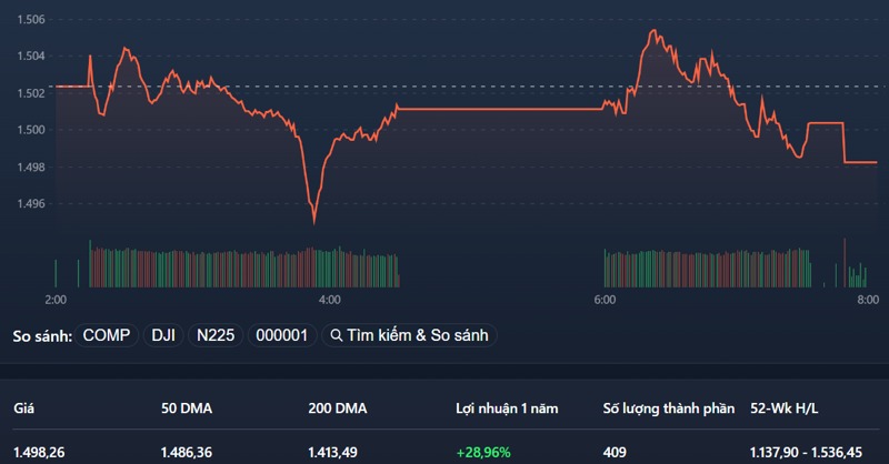 VN-Index kết phiên mất 4,08 điểm, rơi xuống 1.498,26 điểm, tương đương giảm 0,27% so với tham chiếu. VN30-Index giảm 0,54% và chỉ còn 7 mã tăng so với 21 mã giảm. Các blue-chips là “tội đồ” khiến VN-Index mất ngưỡng tâm lý.