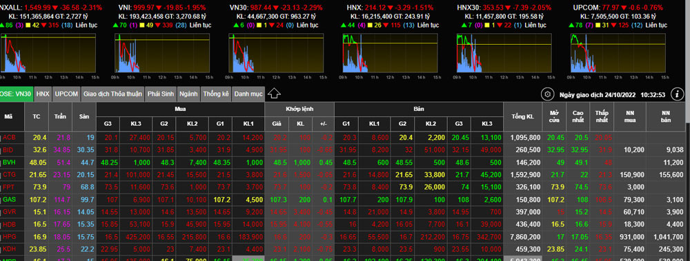 24/10/2022 20:39VN-Index xuống dưới 1.000 điểm