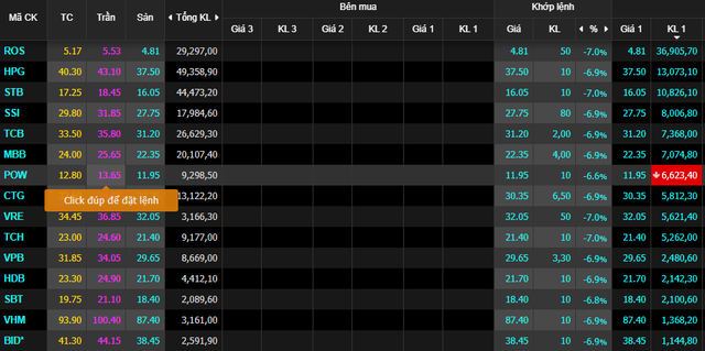 ROS hiện đứng đầu trong danh sách các mã bị chất lệnh bán sàn khi có đến 37 triệu cổ phiếu đang ở giá bán sàn. HPG hiện dư bán sàn 13 triệu cổ phiếu.