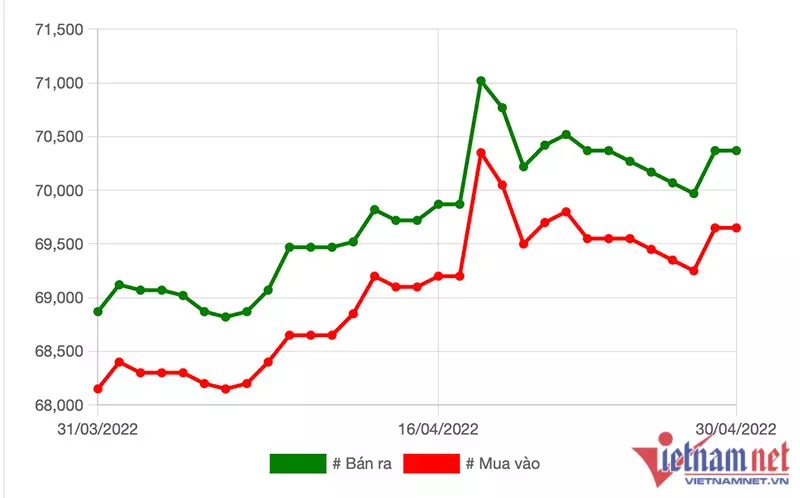 Thị trường vàng trong nước kết thúc tháng 4 tăng giá. Nếu bán vàng SJC ngày 1/4 thì sau 1 tháng, khách hàng đã bị lỗ 1,2 triệu đồng/lượng. Còn nếu mua trong ngày đó, người tiêu dùng đã lãi 480 nghìn đồng/lượng khi bán vàng ngày 30/4.
