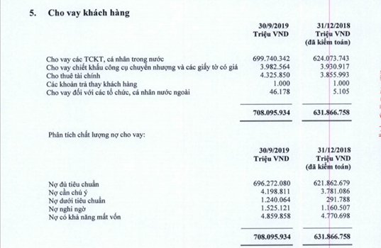 Trong quý 3/2019, mặc dù nợ dưới tiêu chuẩn đã có chuyển biến tích cực, giảm so với cuối tháng 6 nhưng nợ nhóm 4 (nợ nghi ngờ) lại tăng hơn 2 lần lên 1.525 tỷ.