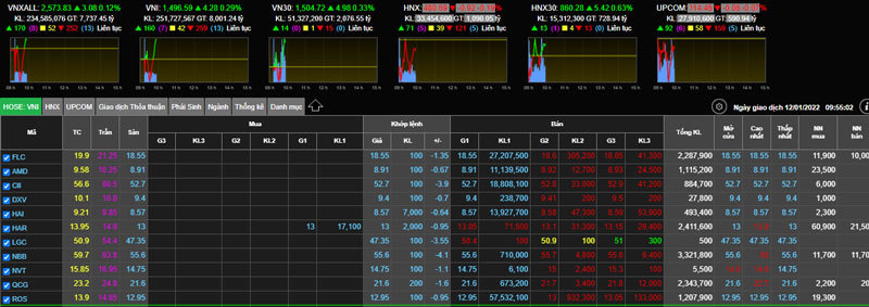 Sau thông tin Tân Hoàng Minh đêm 11/1 hủy đấu giá và ông chủ FLC Trịnh Văn Quyết bị hủy lô bán chúi 74,8 triệu cổ phiếu FLC khi giá lên cao, sáng nay 12/1 hầu hết các cổ phiếu thuộc nhóm bất động sản và liên quan tới ông Quyết giảm mạnh.