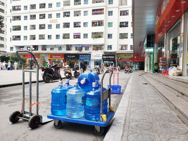 Chủ kiot tạp hóa tại HH4C, chung cư Linh Đàm (Hoàng Mai, Hà Nội) cho biết, suốt 4 ngày nay, trung bình mỗi ngày, cửa hàng bán từ 130 – 150 bình nước loại 20 lít, loại 5 lít từ 20-50 bình. Trong khi trước đó, một ngày cửa hàng này chỉ bán khoảng 1-2 bình nước dạng này.