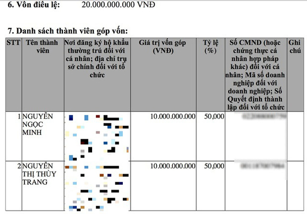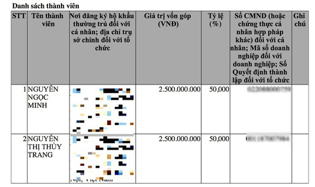 Theo thông tin trên báo Dân Trí, vốn điều lệ của Công ty Lối sống mới tại thời điểm mới thành lập là 20 tỷ đồng với hai thành viên góp vốn là Nguyễn Ngọc Minh và Nguyễn Thị Thuỳ Trang, mỗi người 10 tỷ đồng. Hai người này cùng chung nơi đăng ký hộ khẩu thường trú tại Quận Hai Bà Trưng, Hà Nội.