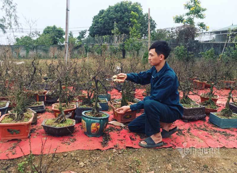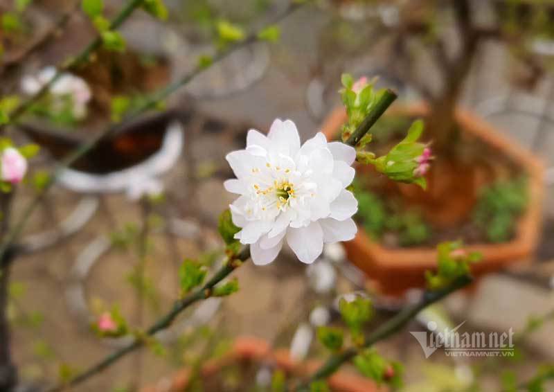 Gắn bó với hoa mai trắng gần chục năm nay, anh Ước chia sẻ, vốn có sở thích về nghệ thuật bonsai cây cảnh nên ngoài công việc trong đơn vị quân đội, anh tính toán làm thêm nghề tay trái kiếm thêm thu nhập.