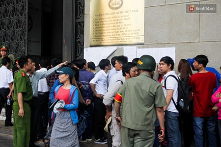 Còn chú Hải cho biết, chú đi xe buýt lúc 5 giờ sáng từ Bình Dương lên đây để mua tiền 100 đồng. Chờ đến khi NHNN mở cửa hỏi mới được biết chỉ bán cho những người có trong danh sách nên chú xin tờ đăng ký mua rồi sau đó lại đi về.