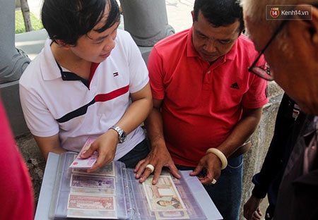 | Trong lúc chờ đợi một số nhà sưu tập tiền mang tiền mình sưu tầm ra khoe mọi người. |