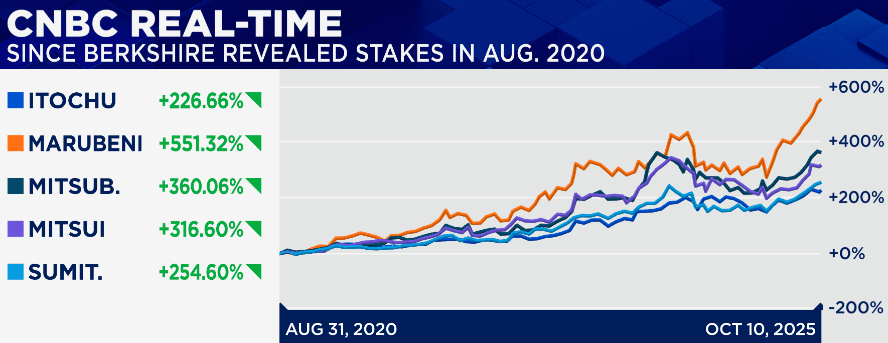 Trong cuộc phỏng vấn với CNBC năm 2023, Buffett nói rằng ông bị thu hút bởi các cổ phiếu Nhật từ năm 2020 vì “chúng được giao dịch ở mức giá mà ông cho là quá rẻ, đặc biệt khi so với lãi suất thời điểm đó”.