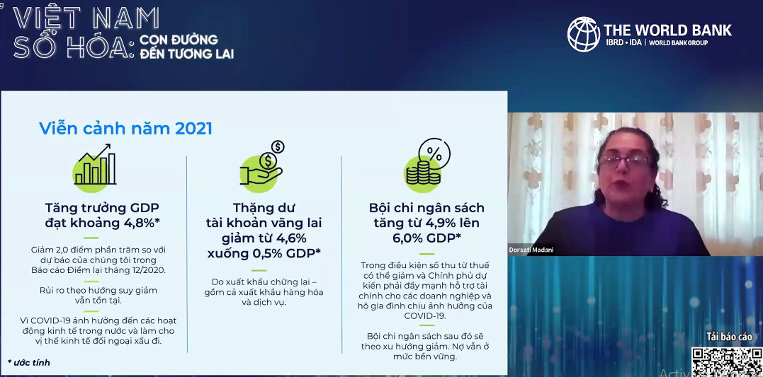 Bà Dorsati Madani, chuyên gia kinh tế cao cấp WB, cho rằng, kinh tế toàn cầu vẫn ở trong tình trạng bất định do dịch bệnh, vì vậy, tăng trưởng kinh tế của Việt Nam có thể thấp hơn dự báo.