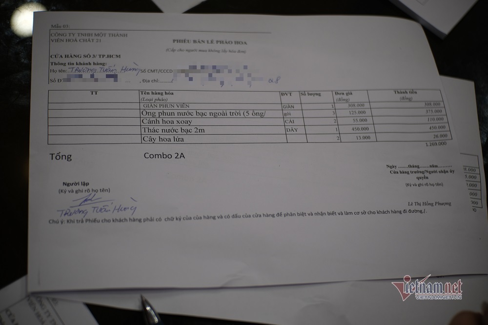 Chị Lê Thị Hồng Phượng - Cửa hàng trưởng Cửa hàng Pháo hoa số 3 - thông tin, việc buộc phải bán pháo hoa theo combo là do khách hàng “lùng tìm” sản phẩm giàn phun viên quá nhiều trong khi số lượng mà Z121 cấp cho các điểm bán hạn chế. Hiện mới cấp về hơn 3.000 sản phẩm giàn phun viên trong ngày 18/1.
