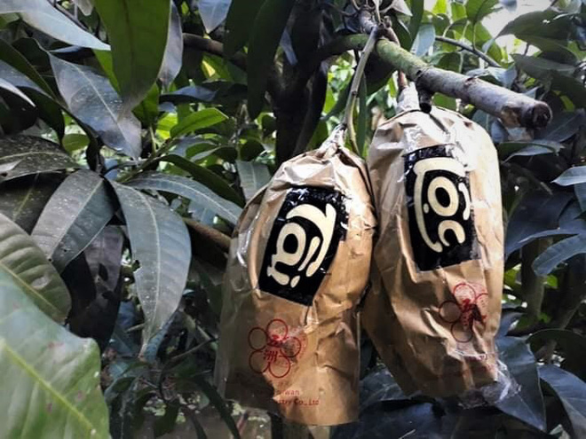 Nói về các công đoạn chăm sóc loại quả này, anh Bùi Văn Thức, chủ 1 vườn xoài "nhả chữ" cho hay, ngay từ khi quả còn non, nhà vườn đã phải dùng túi để bọc xoài. Khi xoài bắt đầu lớn hơn 1 chút, vào độ trưởng thành thì bắt đầu cắt bao bọc ra và tạo hình bằng cách ghép chữ trên xoài.