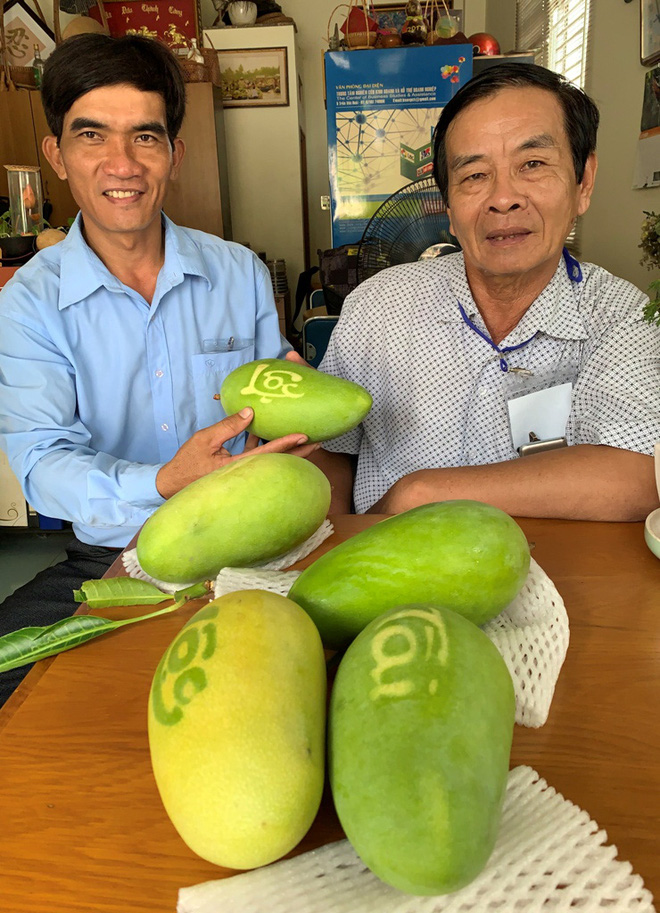 "Tôi phải chăm sóc quả xoài tới gần 4 tháng, sau đó lựa chọn những trái đầy đặn và đẹp nhất để đặt chữ cản quang. Thời gian đặt chữ mất 15 – 20 ngày. Hiện tại, xoài tại vườn nhà tôi có 3 màu đó là chữ đỏ, chữ vàng và chữ xanh.