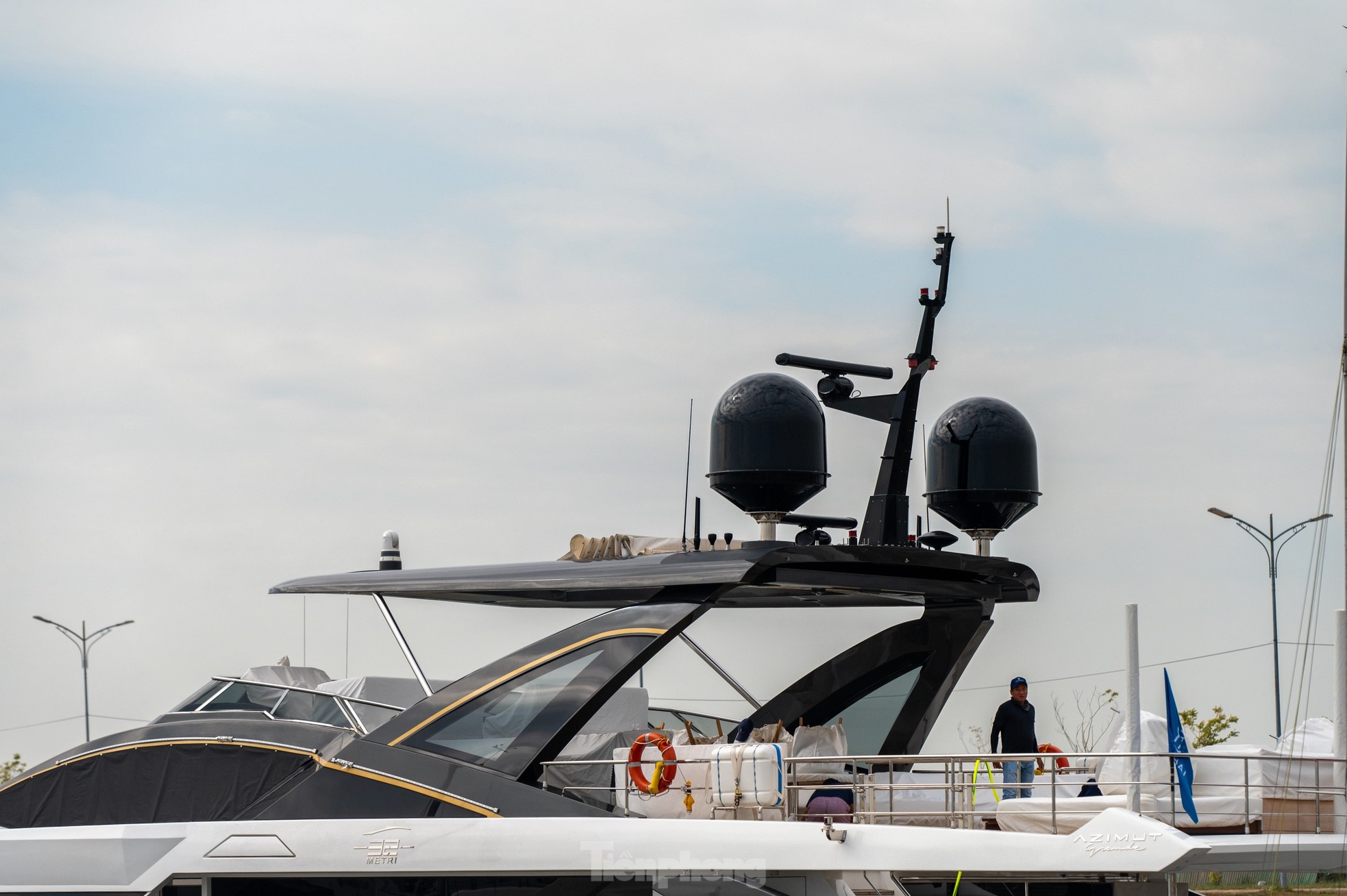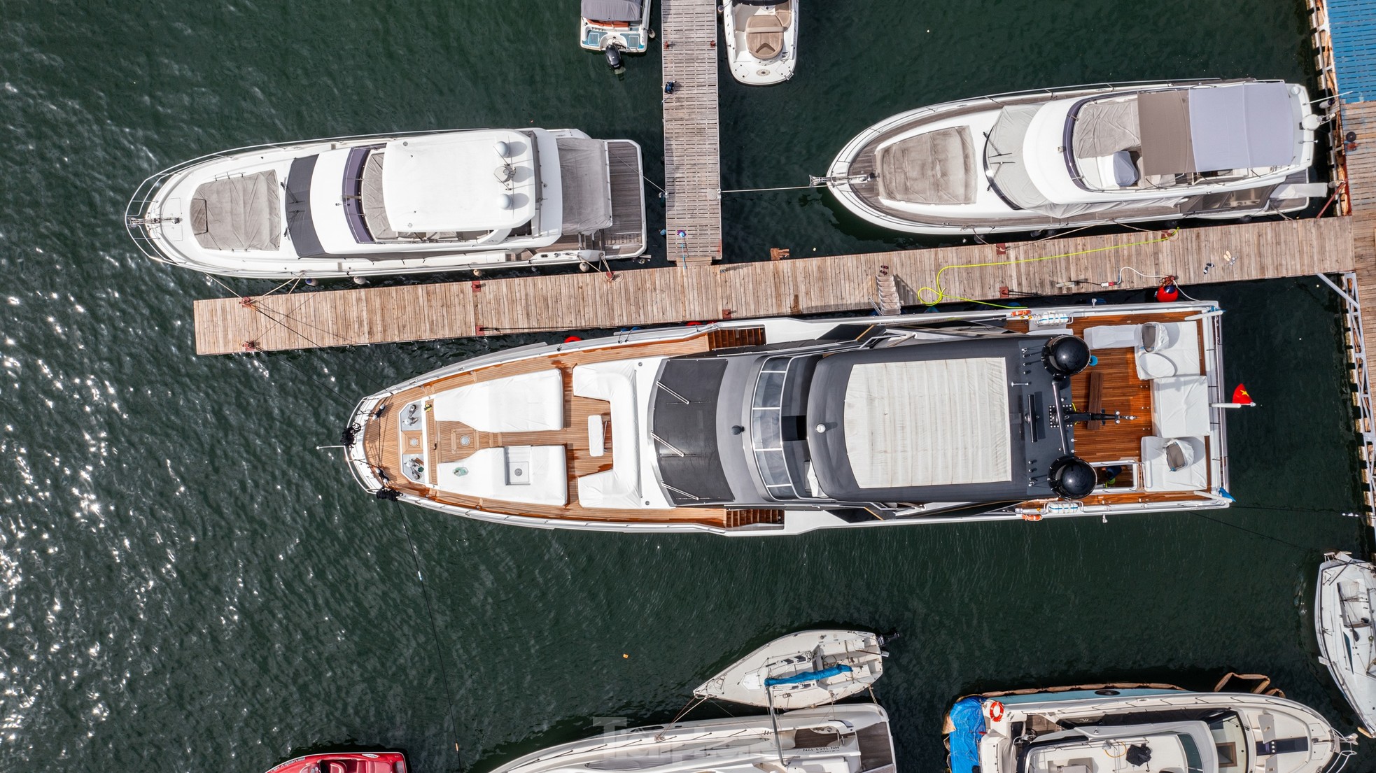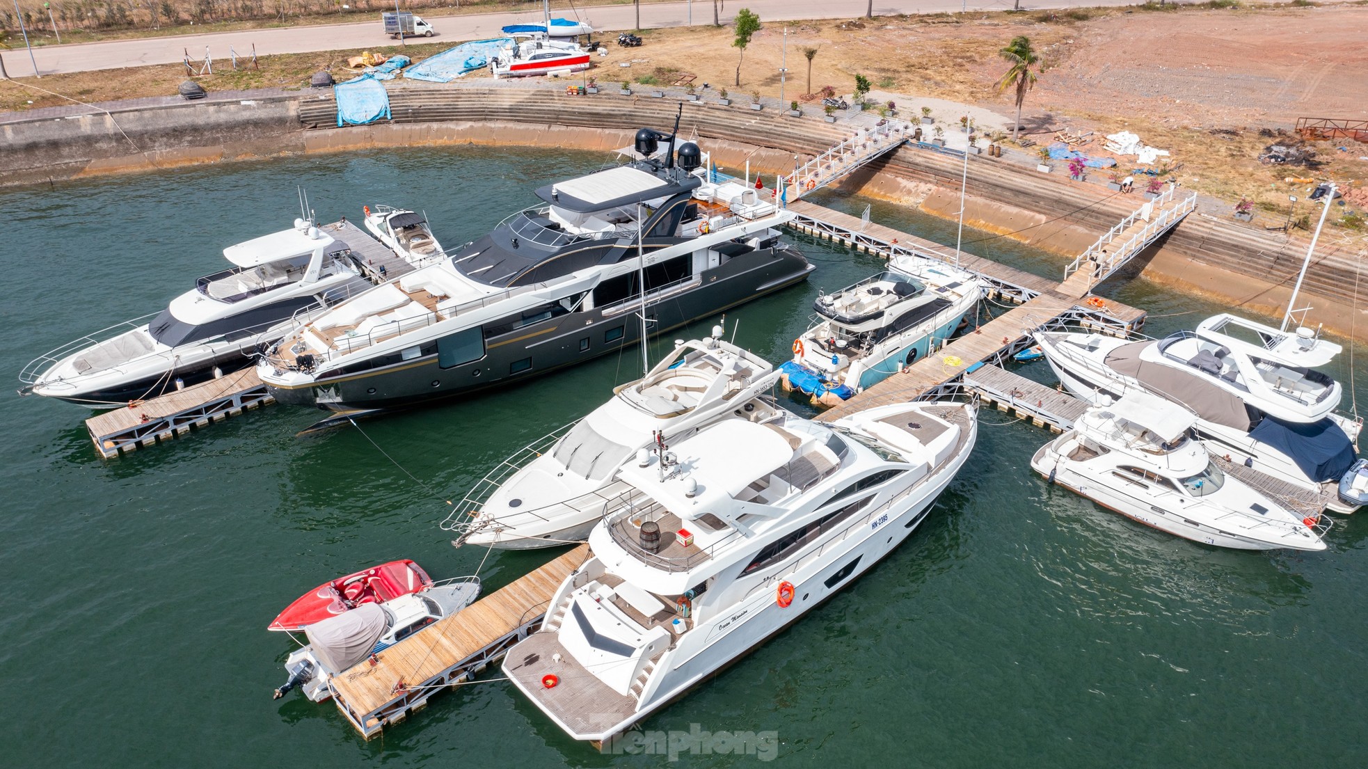 Chiếc "siêu du thuyền" trị giá hơn 600 tỷ đồng đang được neo đậu tại âu du thuyền thuộc Cảng tàu khách quốc tế Tuần Châu, Hạ Long, Quảng Ninh và được canh phòng nghiêm ngặt.