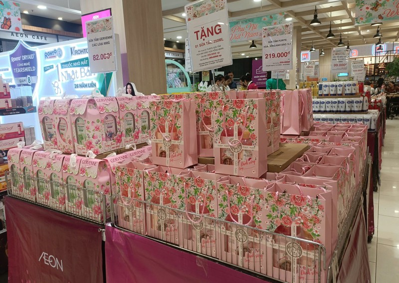 Trong khi đó, nhóm quà tặng tiêu dùng thiết yếu như sữa tắm, dầu gội, nước hoa, kem dưỡng da…có sức mua nhiều hơn. Tại các Trung tâm thương mại như Aeon Long Biên, Go Big C…, các sản phẩm thuộc nhóm ngành hàng này tăng đáng kể so với thời điểm bình thường và được nhiều người tiêu dùng lựa chọn làm quà tặng cho phụ nữ dịp này. Bởi đây là những sản phẩm thiết yếu mà người thân thường xuyên sử dụng.