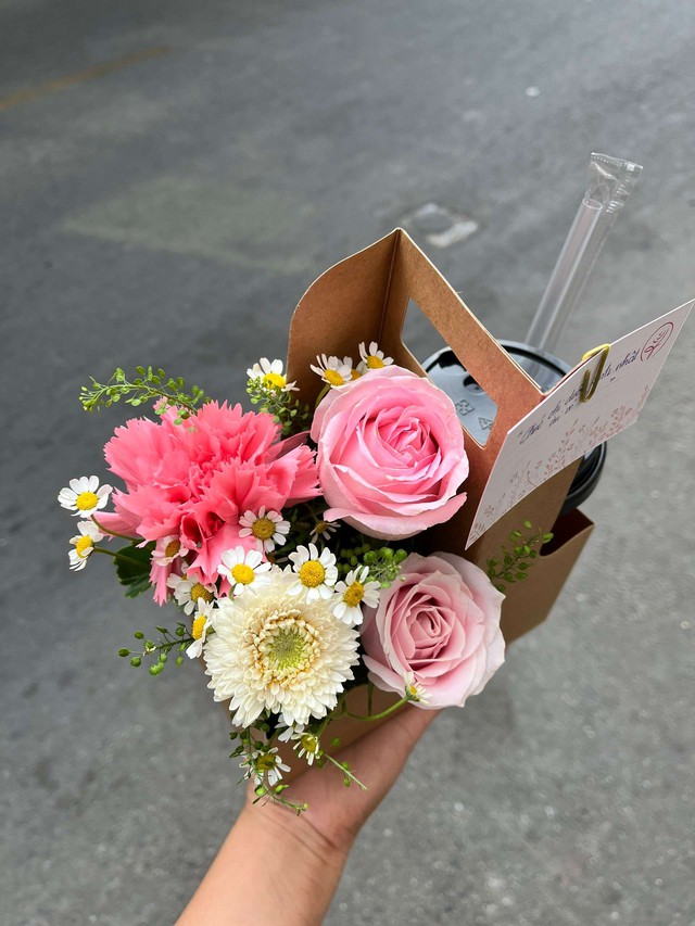 Anh Nguyễn Tâm (ngụ TP HCM) cho biết năm nay anh lựa chọn một set hoa kèm cả trà sữa và bánh kem để tặng cho bạn gái và set hoa kèm dầu gội đầu để tặng mẹ.