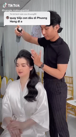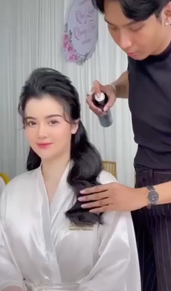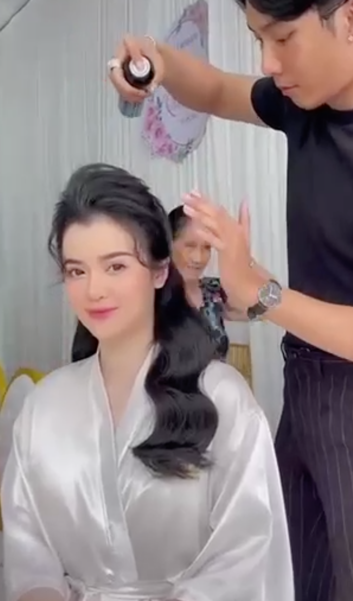 Đoạn clip được lan truyền nhanh chóng trên mạng xã hội ghi lại cận cảnh nhan sắc tuyệt hảo, không góc chết của con dâu bà Phương Hằng. Mặc bộ áo dài đỏ chỉn chu, bà Hằng nền nã đứng cạnh con dâu, nhiều người từ đó cũng khó có thể phủ nhận rằng nàng dâu này có khuôn mặt y hệt bà Hằng.