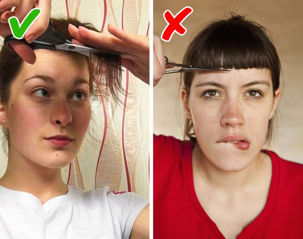 Lười tới tiệm, bạn thường tự tỉa tóc bằng kéo. Nhưng nếu bạn cần cắt tóc mái của mình, tốt hơn hết là đừng tự làm điều đó trước gương.