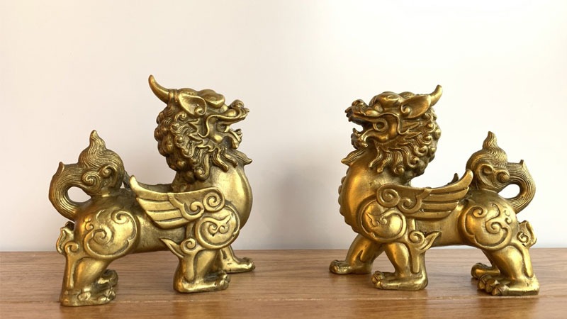 Sư Tử đồng được coi là bảo vật cho các ngôi nhà để hóa giải tà khí, giúp may mắn và thịnh vượng, đồng thau nguyên chất thường được sử dụng để đúc tượng trong quá trình sản xuất.