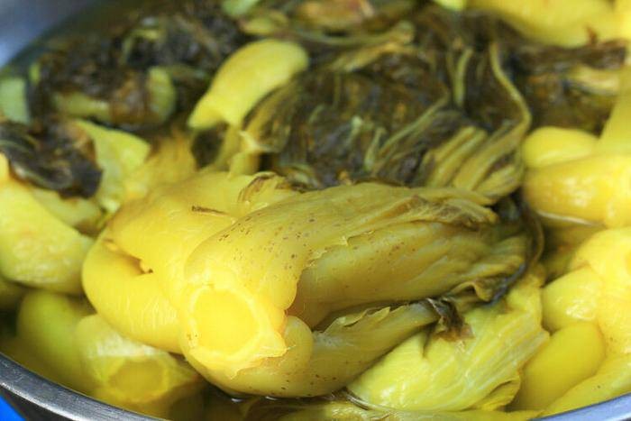 Dưa chua và cháo trắng là sự kết hợp bữa sáng phổ biến của nhiều người nhưng cách ăn này không hề tốt cho sức khỏe. Dưa chua cũng là một loại sản phẩm muối chua, giống như thịt đã qua chế biến, có hàm lượng muối cao, dễ tạo ra nitrit trong quá trình lên men. Thức ăn nhiều muối dễ làm tổn thương niêm mạc dạ dày, trong khi nitrit sau khi vào dạ dày dễ phản ứng với các amin trong thịt tạo thành chất nitrosamine gây ung thư. Lượng muối cao kết hợp nitrosamine cao có thể có sức tàn phá rất lớn đối với tế bào dạ dày.
