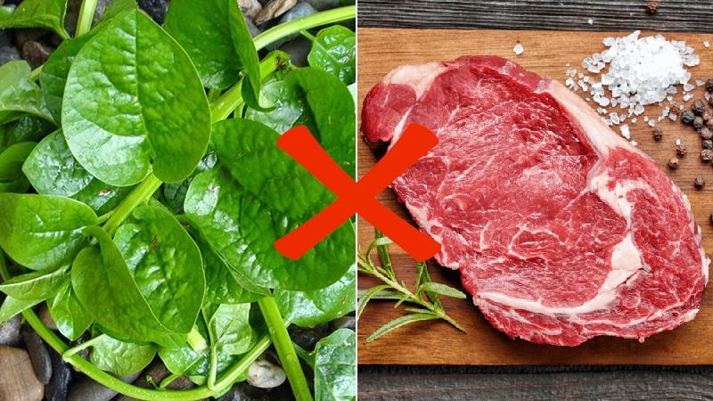 Rau mồng tơi khi kết hợp với thịt bò sẽ mất đi tính nhuận tràng, tiêu hóa kém hơn. Những người bị táo bón nếu kết hợp hai thực phẩm này với nhau sẽ khiến bệnh thêm trầm trọng.